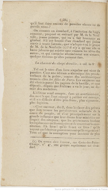 De plus, il me paraît que cette « oeuvre » n’est pas forcément anticlérical ; je me demande en quoi ça dérangeait les révolutionnaires que des curés fréquentent des prostituées. Peut-être étaient-ils à cette époque plus tatillons que les catholiques sur les rapports sexuels. Enfin faut voir…
