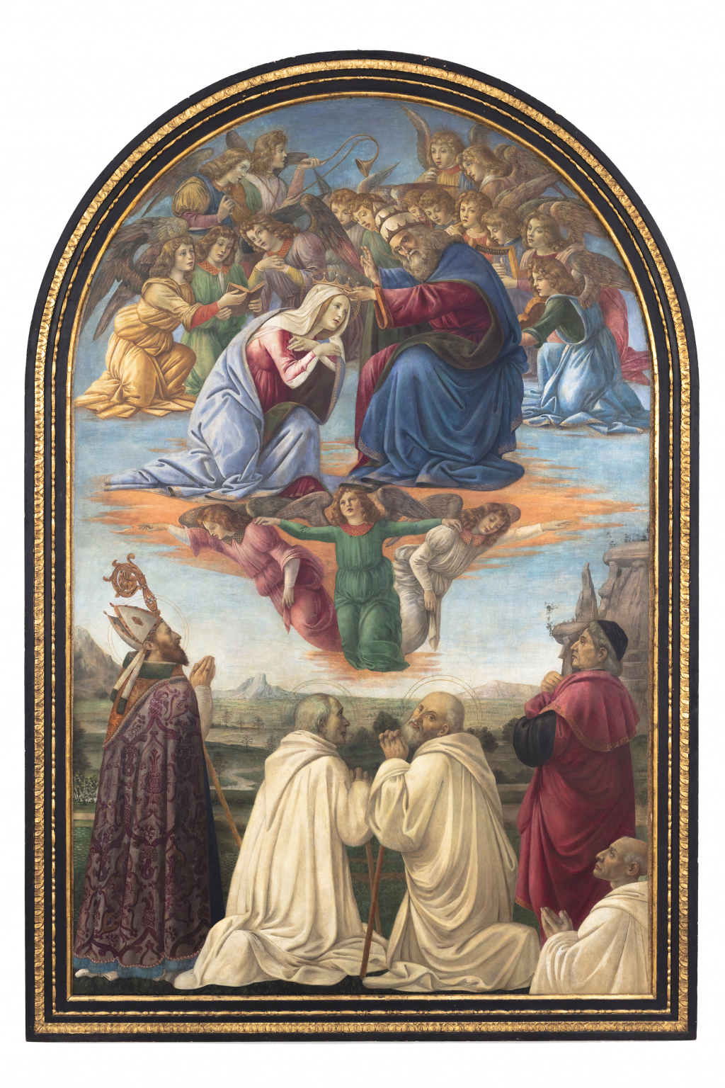 Le Couronnement de la Vierge avec saint Juste de Volterra, le bienheureux Jacopo Guidi de Certaldo, saint Romuald, saint Clément et un moine camaldule (vers 1462), destiné à l’église de Volterra, réalisé par Botticelli et son atelier dans les années 1490, lorsque le peintre atteint la pleine maturité de son art, en est un exemple emblématique.