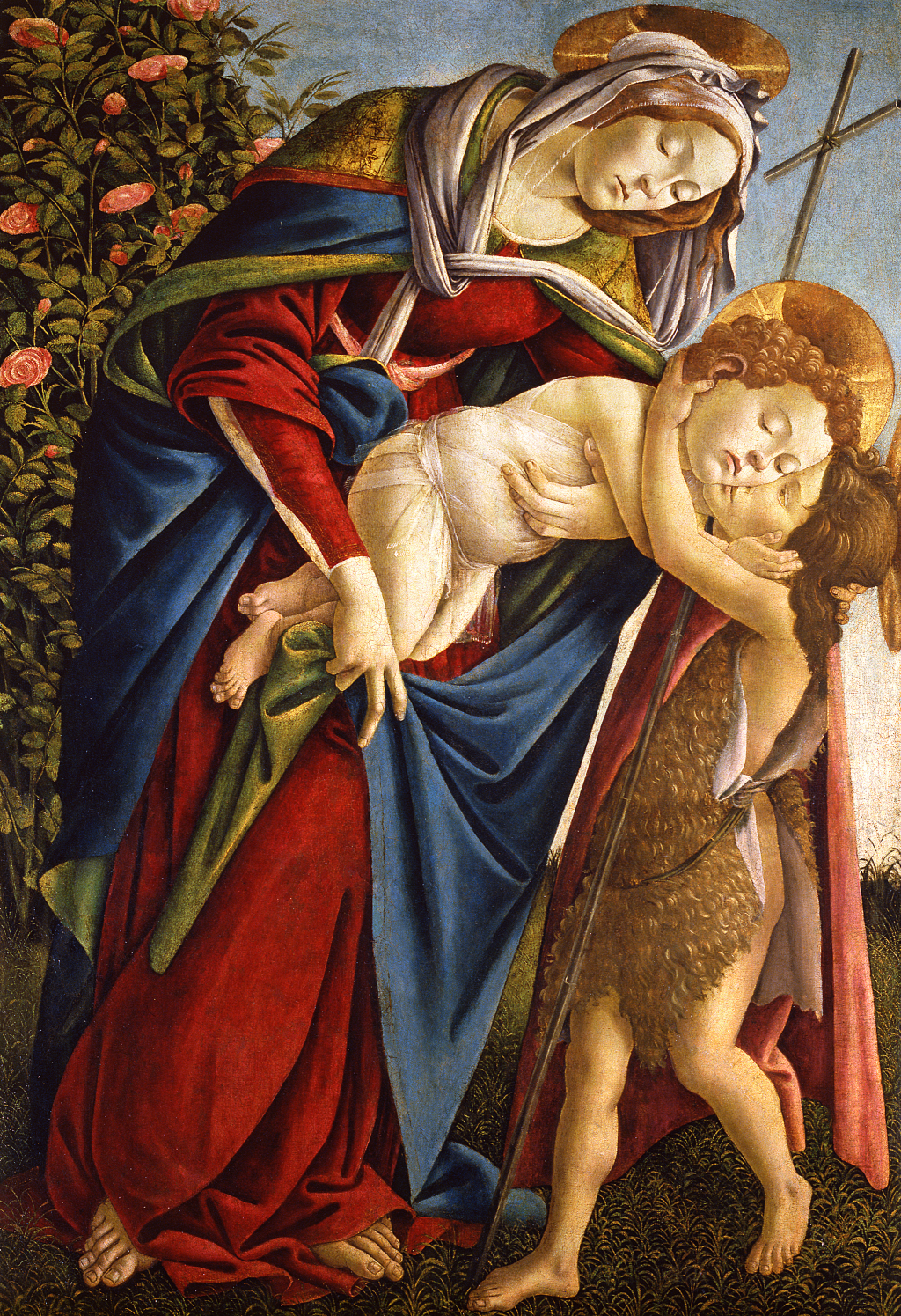 Aux côtés de Filippo Lippi, le jeune Sandro acquiert la technique de la peinture de chevalet mais également celle de la fresque. C’est à travers la thématique de la Vierge à l’Enfant,